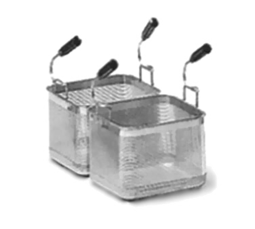 Pasta Cooker Basket, 1/2 Basket, (2) handles, full size, heavy duty stamped stainless steel baskets with replaceable handles and fine mesh design for delicate pasta such as angel hair, rectangular (requires use of F.F. base)