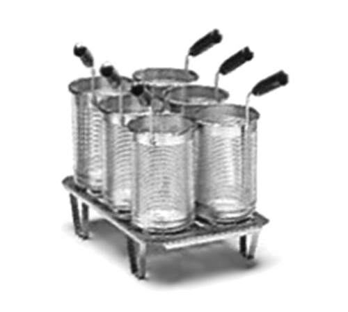 Pasta Cooker Baskets, 1/6 Baskets (set of 6), heavy duty stamped stainless steel baskets with replaceable handles and fine mesh design for delicate pasta such as angel hair, includes F.F. base