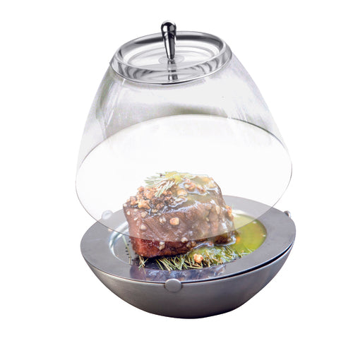 Mini Steamer, 8 oz., 4-3/4" dia. x 5-3/4"H, round, with polycarbonate lid, 18/10 stainless steel