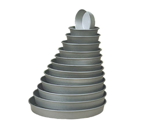 Pizza Pan, tapered/nesting, 8" top ID, 7" bottom ID, 2" deep, solid, 14 gauge aluminum, with hard coat (custom made/non-returnable item), Made in USA (hand wash only)