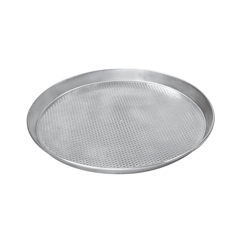 Pizza Pan, 12-1/2" top dia. x 1"H, round, perforated, hand wash only, aluminum