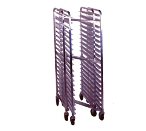Nesting Mobile Pan Rack, full height, open sides, with slides for (20) 14" x 18" or (10) 18" x 26" sheet pan capacity, welded angle-type stainless steel frame, end loading, 5" casters, NSF