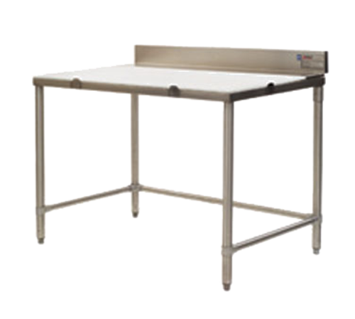 Boning Table, 60"W x 30"D, 4" removable stainless steel backsplash, (2) removable 1/2" thick polymer boards, 1-1/2" square stainless steel tubular frame, 6" removable stainless steel deck, stainless steel legs & side/rear crossrails, adjustable metal bullet feet, unit ships assembled & crated, NSF