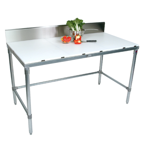 Cutting Table, 36"W x 24"D x 41"H overall size, 3/4" reversible poly top with 6" stainless steel removable backsplash, galvanized legs, adjustable side & rear bracing, & bullet feet, NSF, CSA-Sanitation, KD