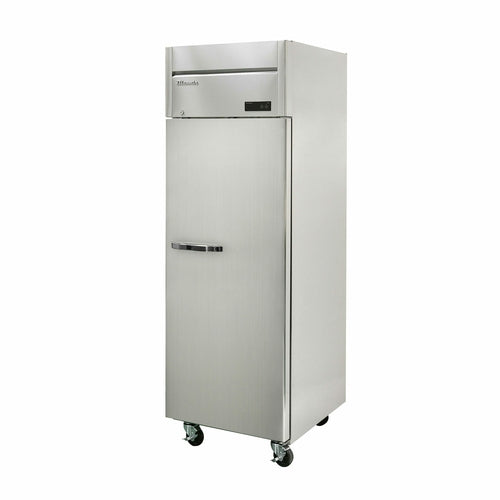 Freezer, reach-in, one-section, 23 cu. ft. capacity, top-mounted self-contained refrigeration, (1) full-size solid self-closing door (locking), metal door handle, door open alarm, (4) adjustable wire shelves, digital controls, LED interior lighting, stainless steel interior & exterior, 4" swivel casters (2 braked), R290 Hydrocarbon refrigerant, 1/2 HP, 115v/60/1-ph, 4.9 amps, cord with NEMA 5-15P, cETLus, ETL-Sanitation, ENERGY STAR®
