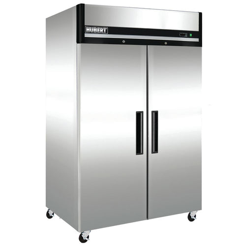 Freezer, reach-in, 2-section, 49 cu. ft., 54"W x 32-7/8"D x 82-5/16"H, full-height solid hinged doors (locking), (6) heavy duty adjustable polyethylene coated wire shelves, LED temperature display, automatic defrosting, automatic interior lighting, large evaporator & condenser, temperature range: -10° to 10°F, top mount self-contained refrigeration system, aluminum interior, stainless steel exterior, (4) casters (2 locking), 120/60/1-ph, 11 amp, 1380 watt, 3650 BTU, NEMA 5-15P, UL, UL EPH, ENERGY STAR®