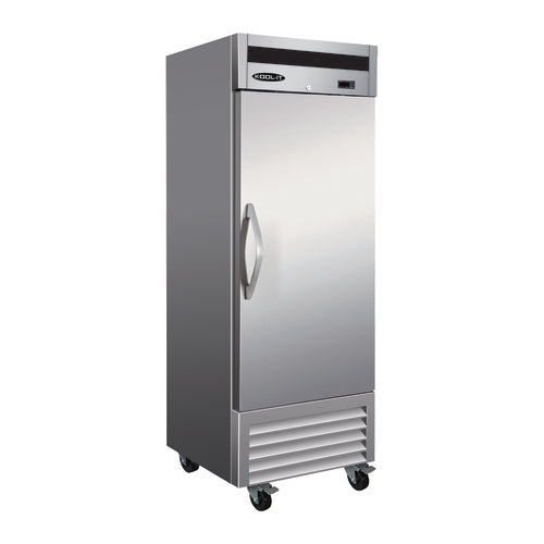 IKON Freezer, reach-in, one-section, bottom mount self-contained refrigeration, 17.8 cu. ft. capacity, 26-4/5"W x 32-7/10"D x 82-3/10"H, (1) field reversible locking solid stainless steel door, (3) adjustable shelves, accommodates full-size sheet pans, electronic thermostat, 0° to -10°F temperature range, digital LED temperature display, condensate evaporator, R290 Hydrocarbon refrigerant,, stainless steel interior, stainless steel front & sides, 4" swivel casters (2) braked, 1/2 HP, 115v/60/1-ph, 8.0 amps, NEMA 5-15P, cULus, UL EPH, ENERGY STAR®