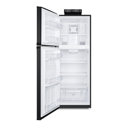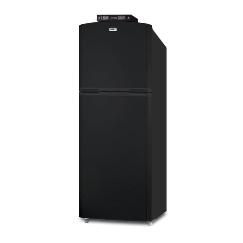 Break Room Refrigerator-Freezer, reach-in, one-section, 26"W, 12.9 cu. ft. capacity, bottom mount self-contained refrigeration, (2) left hinged solid doors, (2) refrigerator shelves & (1) freezer shelf, (1) crisper, dial thermostat, frost-free, exterior mounted NIST certified thermometer for each section, high/low temperature alarm, interior lighting, white interior, black front, charcoal sides, level legs & wheels, 115v/60/1-ph, 1.3 amps, UL, ULC (Residential)