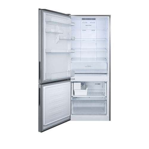 Refrigerator-Freezer, reach-in, one-section, built-in or freestanding, rear mount self-contained refrigeration, 27.63"W x 26.75"D x 67.63"H, 14.8 cu. ft. capacity, bottom freezer storage, factory installed ice-maker, (2) left-hinged solid doors, (3) adjustable glass shelves, (1) freezer drawer, (1) crisper, bottle rack, frost-free defrost, independent controls, digital thermostat, LED interior lighting, fingerprint resistant, platinum finish, white interior, level legs, R600a Hydrocarbon refrigerant, 115v/60/1-ph, 2.5 amps, ETL, cETL, (Residential)