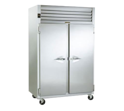 Dealer's Choice Refrigerator, Pass-thru, two-section, 48.8 cu. ft., self-contained refrigeration, control side: (2) full-height solid doors (hinged left/right), other side: (2) full-height solid doors (hinged left/right), (3) epoxy coated shelves per section (factory installed), microprocessor control with LED display, LED interior lights, stainless steel doors & louver rail, anodized aluminum sides & interior, 6" high casters, R290 Hydrocarbon refrigerant, 3/4 HP, cETLus, NSF