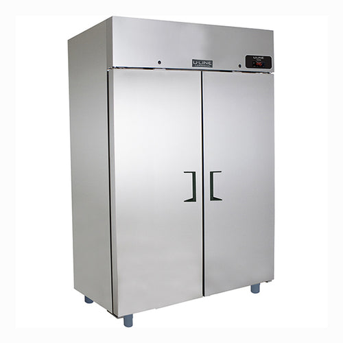 U-Line by Desmon Refrigerator, Reach-In, self-contained refrigeration, two-section, (2) solid doors, 48 cu. ft., 28° F to 46° F temperature range, auto defrost, epoxy coated & sealed evaporator, includes (6) epoxy coated wire shelves, electronic digital temperature control with alarm, R290 refrigerant, 115v/60/1-ph