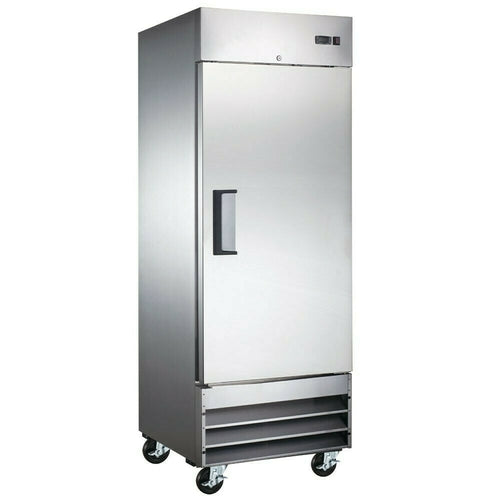 Coldline Refrigerator, reach-in, one-section, narrow depth, 29"W, 19.0 cu. ft. capacity, bottom mounted self-contained mounted refrigeration, (1) self-closing solid hinged locking door with 90° stay open feature, (3) epoxy-coated adjustable wire shelves, 33° to 41°F temperature range, digital temperature control, automatic defrost, LED interior light, stainless steel front & sides, aluminum back, 304 stainless steel interior, (4) casters (2 with brakes), R290 Hydrocarbon refrigerant, 1/5 HP, 115v/60/1-ph, 2.8 amps, cord, NEMA 5-15P, cETLus, ETL-Sanitation