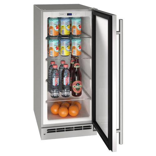 Outdoor Collection Undercounter Refrigerator, reach-in, one-section, 14-15/16"W, rear mount self-contained refrigeration, 3.1 cu. ft. capacity, holds (61) 12 oz. bottles or (100) 12 oz. cans, 34°F to 60°F temperature range, (1) field reversible solid door, (3) adjustable glass shelves, digital touch controls & display, LED lighting, white interior, stainless steel exterior, adjustable legs, R600a, 115v/60/1-ph, 1.2 amps, UL, ENERGY STAR®
