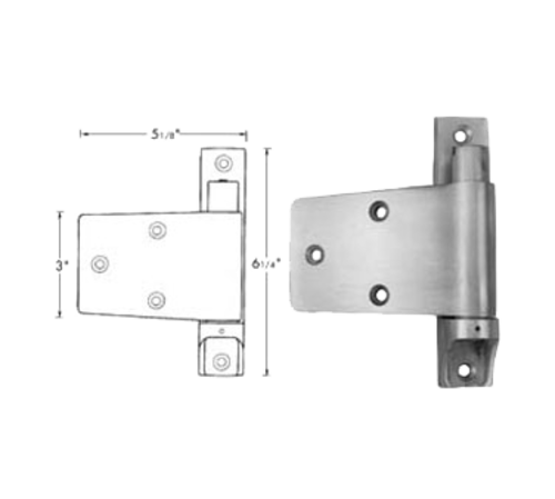Cam Hinge, flush, right hand, 5-1/8"L x 6-1/4" H x 3" strap, spring assisted, satin aluminum