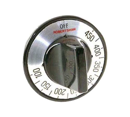 Electric Thermostat Dial, 100° to 450° F temperature range, standard-duty, fits standard .187 dia. D-stem, universal four-way mounting positions