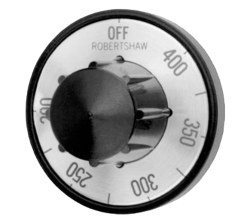Electric Thermostat Dial, 200° to 400° F temperature range, heavy duty, fits standard .187 dia. D-stem, universal four-way mounting positions