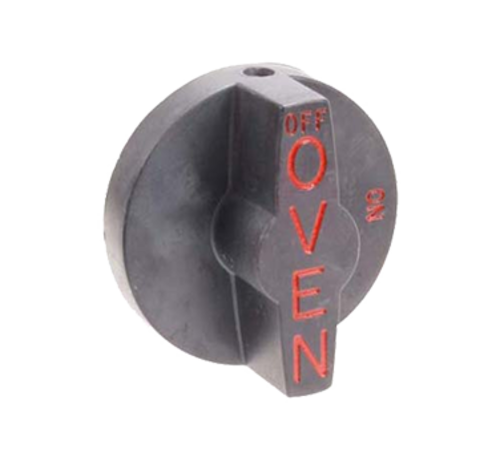 Oven Valve Knob, .40"D-stem, set screw, black, red lettering, plastic