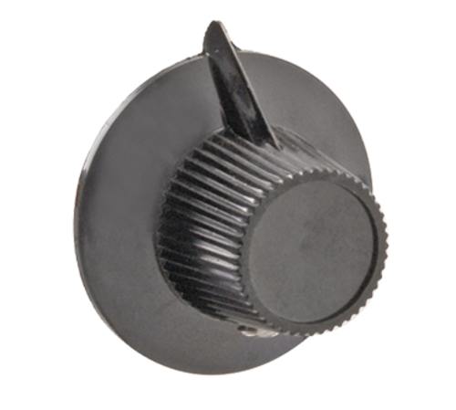 Knob, 1-1/8" OD x 1-1/8"D, with set screw, black, plastic