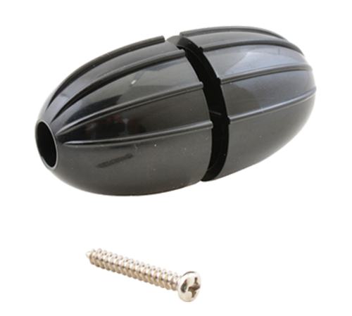 Carriage Handle Knob, 2-1/8", 1-1/16" outer dia., oval, 1-4"D stem, includes: mounting screw, plastic, black