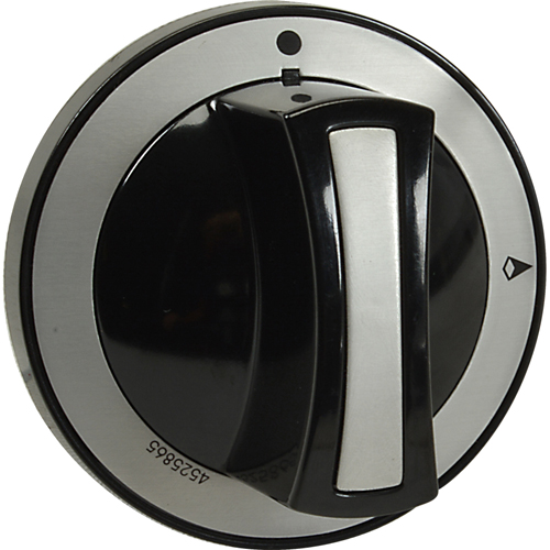 Knob, 2-5/8" dia., 1/4"D stem, flat down in "off" position, for broiler/griddle, plastic, black