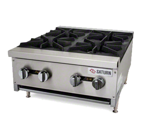 HDC Series Hotplate, gas, countertop, 24" wide, low profile height, (4) cast iron burners & cooking grate, manual controls, stainless steel construction, 4" chrome legs, 106,000 BTU