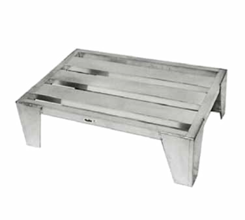 Kelmax Dunnage Rack, 4"W "E" channel, one tier, 36"W x 24"D x 8"H, aluminum, gusset legs with flange feet, min. capacity of 3000 lb., NSF
