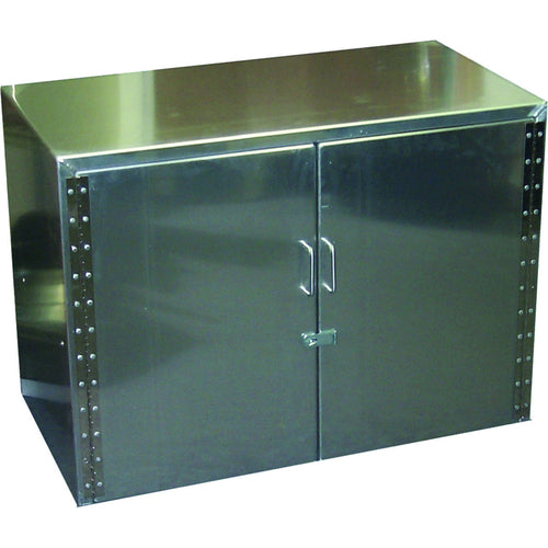 Kelmax Wall Storage Cabinet, 48"W x 19"D x 26"H, hinged doors, removable center shelf, welded aluminum