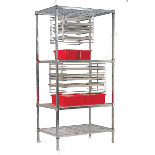Amco Tray Slide, 13-7/8" wide, spacing between slides = 1 1/4", slide width = 1 7/8" on each side, capacity 12 trays, Polygard® antimicrobial polymer coating, blue