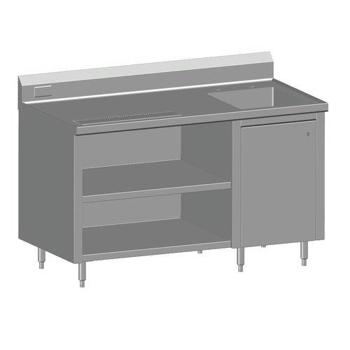 Universal Stainless Beverage Counter, 60" long, 30" wide, 16/300 series stainless steel top; 18/300 series stainless steel body and undershelves; 16"x18"x12" sink bowl integral with top; bowl on right, NSF, CSA