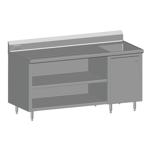 Universal Stainless Beverage Counter, 72" long, 30" wide, 16/300 series stainless steel top; 18/300 series stainless steel body and undershelves; 16"x18"x12" sink bowl integral with top; bowl on right, NSF, CSA