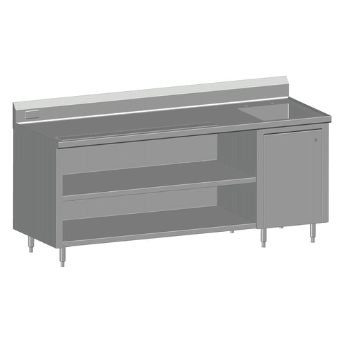 Universal Stainless Beverage Counter, 84" long, 30" wide, 16/300 series stainless steel top; 18/300 series stainless steel body and undershelves; 16"x18"x12" sink bowl integral with top; bowl on right, NSF, CSA