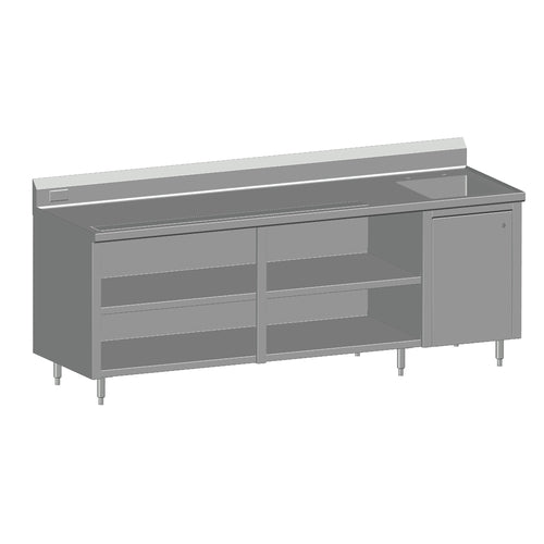 Universal Stainless Beverage Counter, 96" long, 30" wide, 16/300 series stainless steel top; 18/300 series stainless steel body and undershelves; 16"x18"x12" sink bowl integral with top; bowl on right, NSF, CSA