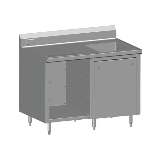 Universal Stainless Beverage Counter, with rack slides; 48" long, 30" wide, 16/300 series stainless steel top; 18/300 series stainless steel body and undershelves; 16"x18"x12" sink bowl integral with top; bowl on right, NSF, CSA