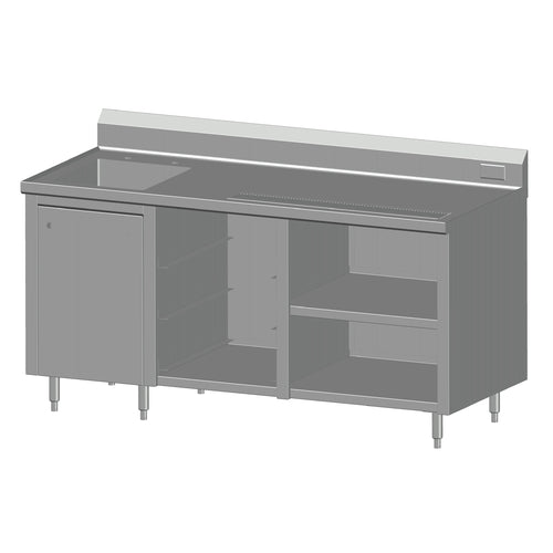 Universal Stainless Beverage Counter, with rack slides; 72" long, 30" wide, 16/300 series stainless steel top; 18/300 series stainless steel body and undershelves; 16"x18"x12" sink bowl integral with top; bowl on left, NSF, CSA