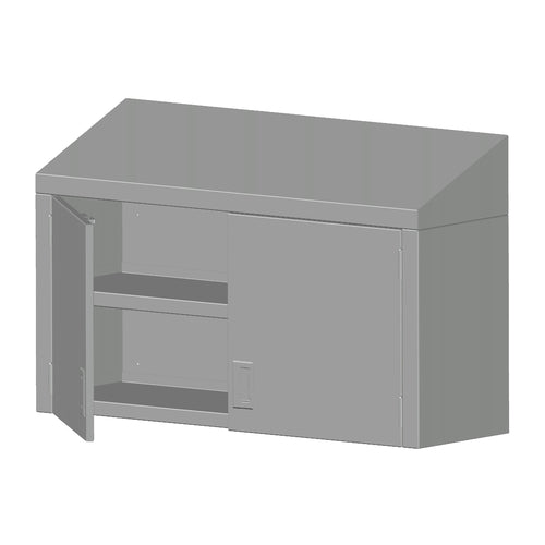 Universal Stainless Cabinet, wall mount, 36" x 15" x 30", enclosed design with hinged doors, sloped top, intermediate shelf, stainless steel construction, NSF