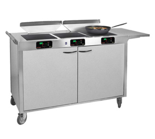 Max Induction™ Mobile Cooking Station, (3) 2600 watt MAX Induction® ranges (SM-261R), (2) induction air filter systems (AF-350), integrated power management system (PM-2221), 20 cook modes, temperature range 100°F to 400°F, laminate enclosed cabinet, (4) 5" casters with rubber tires (front locking), stainless steel construction with corner trim, includes 6 ft. power cord (custom lengths are available), 208-240v/60/1-ph, 8.5kW, 35.0 amps, NEMA 14-50P, ETL, UL-STD 197, NSF-ANSI STD 4, UL-ANSI/NSF No. 2, FCC, cETL