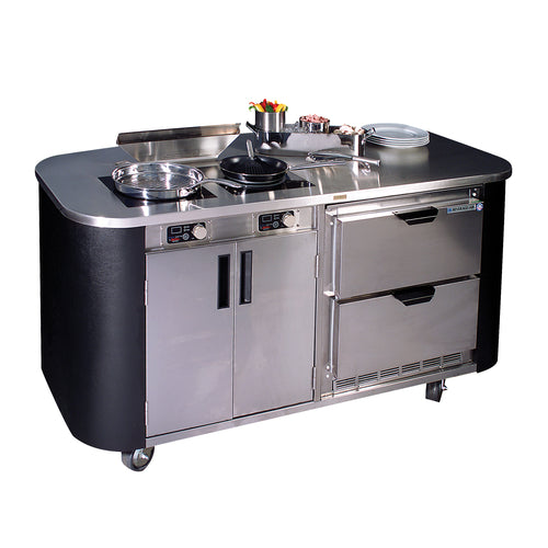 Culinary Station, mobile, 71-2/5"W x 34-4/5"D x 43-9/10"H overall, 38-3/5" working height, cabinet mounted, stainless steel worktop, includes: (2) 2600 watt flush mounted MAX Induction® ranges (SM-261R), air filtration system (AF-350), (2) refrigerated drawers that accommodate standard food pans, (1) integrated surge protected power management system (PM-2231), 20 cook modes, temperature range 100°F to 400°F, stainless steel construction, jet black wrap around laminate finish, 5" heavy duty casters (2) with brakes, 208-240v/60/1-ph, 23.4 amps, 6.03kW, NEMA 14-50P, ETL, UL-STD 197, NSF-ANSI STD 4, UL-ANSI/NSF No. 2, FCC, cETL, UL