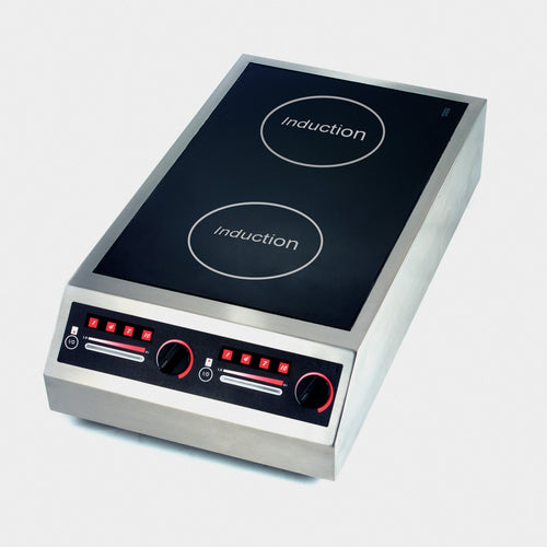 Induction Range, countertop, (2) 3000w burners (front-to-back), ceramic cook surface, touch key & rotary power control, LED display, (9) power settings, (4) pre-set keys, rear space guard, stainless steel construction, 6000 watts, 208v, 28.8 amps
