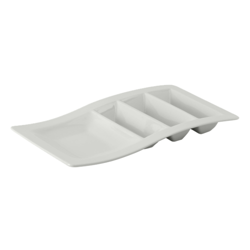 Taco Plate, 14-5/8" x 8-5/8" x 1-5/8"H, rectangular, stackable, microwave & dishwasher safe, oven proof, fully vitrified, lead-free, TuxTrendz, Specialty Items, Porcelain White