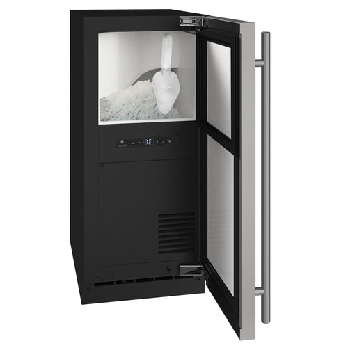 1 Class Nugget Ice Maker With Bin, built-in or freestanding, air-cooled, self-contained condenser, 14-15/16"W, up to 90 lbs/24 hours production capacity, 30 lbs. bin capacity, U-Choose™ with (5) levels of ice density, (1) solid field reversible door, digital touch controls & display, cleaning indicator alert, LED lighting, white interior, black rear & side panels, stainless steel front panel, adjustable legs, R600a Hydrocarbon refrigerant, 115v/60/1-ph, 3.0 amps, UL, ENERGY STAR®