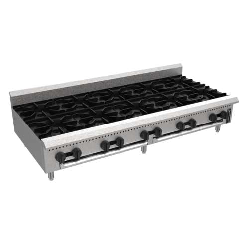 Prime Hotplate, gas, countertop, 60"W, (10) burners, cast iron top grates, (10) independent manual control valves, stainless steel front & sides, (2) removable crumb/drip pans, 4" adjustable chrome legs, 100,000 BTU, cULus, UL EPH Classified