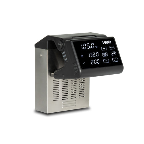 Imersa Pro Sous Vide, immersion circulator, heats up to 30 liters of water, temperature range 68° - 203°F/20° - 95°C, digital display, temperature accuracy (±0.2°F/0.1°C), 10 L/min pump speed, foldable design, smart Wi-Fi app enabled, time and temp memory function, steel, PC, PPO construction, 110-120v/60/1-ph, 10 amps, 1200 watts, NEMA 5-15P, GS, CE(EMC/LVD/ERP), RoHS, Reach, ETL