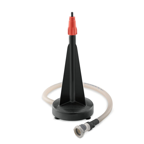 Rinse-O-Matic® Blender Container Rinser, 13-3/5" H, angled spray nozzle, includes: base, 2-1/2 ft. hose assembly, Y connector, faucet adapter & instruction sheet, requires cold water from a faucet with a minimum of 25 psi, NSF (for rinsing residue out of any 64 oz. or smaller blender container)