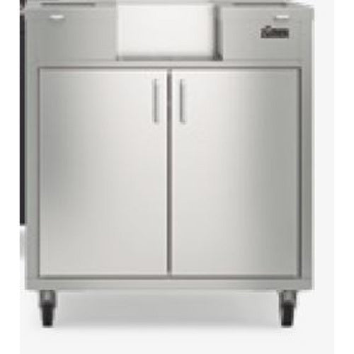 (08815) Podium Narrow Mirror, 28", integrated drip tray with drain, removable waste bin hold up to 55 lbs., (2) swing doors, wheels, shiny stainless steel finish