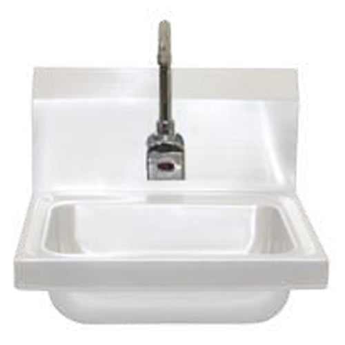 Encore® Intelli-Flo Electronic Faucet, deck mount, battery powered, 6" swivel gooseneck, 1.5gpm vandal resistant laminar antimicrobial aerator, thermostatic mixing valve, infra-red sensor, manual auto-flush, 1 second shut off delay, 20 second adjustable automatic time-out feature, includes: (2) 18" braided stainless steel supply lines & (4) AA batteries, ADA compliant, NSF