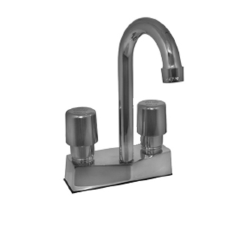Encore® Faucet, centerset, deck mount, 4" (102mm) OC, 3-1/2" (89mm) rigid bent riser tubular spout, self-closing adjustable metering valves, 2.2 gpm aerated stream aerator, low lead compliant, NSF