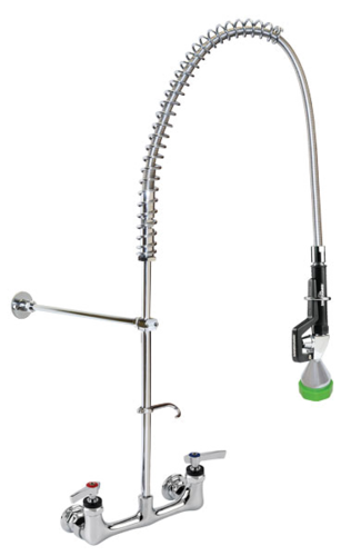 Encore® Pre-rinse Assembly, wall mount, 8" OC, 1/4-turn full volume ceramic valves, lever handles, with wall bracket & Klf-y104a variable flow spray head, retail packaging