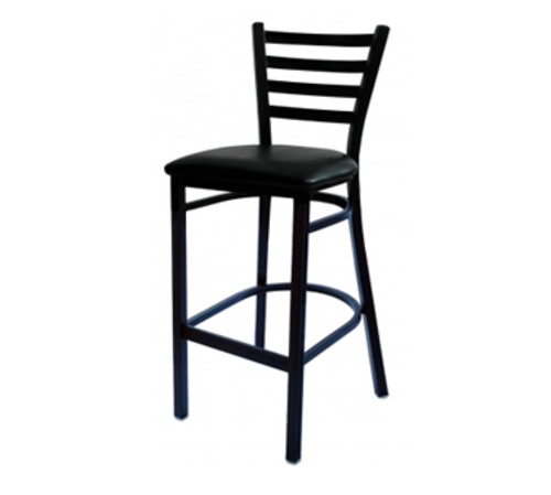Barstool, metal ladder back, upholstered 2" padded seat, fully welded powder coat process, 16 gauge steel frame with black vein, footrest, plastic floor glides, grade 7 uph.