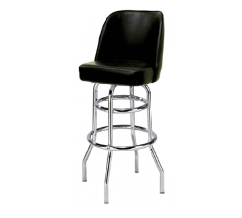 Swivel Barstool, upholstered bucket style seat, heavy duty 360° swivel with full ball bearing race, chrome plated frame, double ring, stainless steel glides, red vinyl