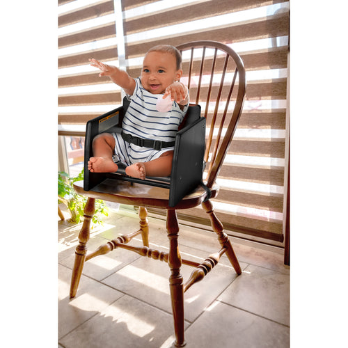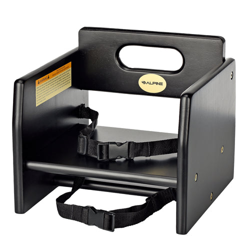 Alpine Industries Child Booster Seat, stacking, waist and chair straps, wood, espresso finish